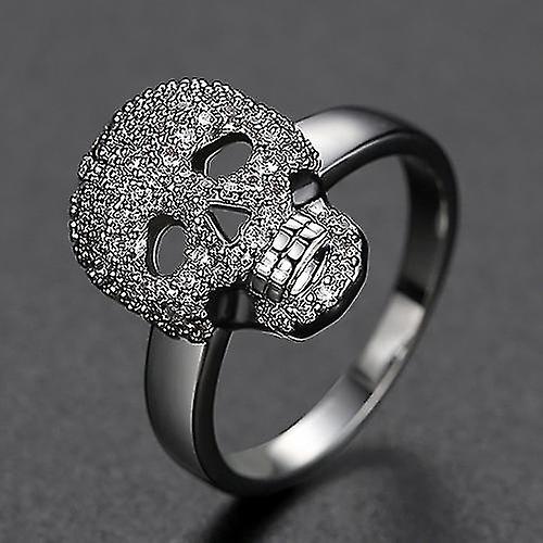 Punk Colorful Cz Skeleton Devil Ring Black White Bling Zircon Skull Face Iced Rings For Men Fashio Biker Hip Hop Jewelry