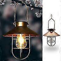Outdoor Solar Lantern, Vintage Metal Hanging Garden Decor With Warm Led Bulbs For Outdoor Garden Yard Patio Tree Decor, Pathway Lighting Decoration (c