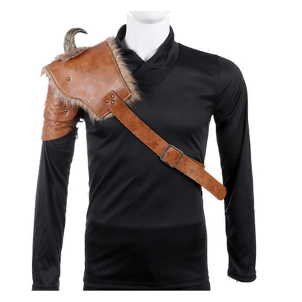 Viking Halloween Costume Medieval Cosplay Men PU Leather Shoulder Plates Light Brown 36*30*2cm 1Set