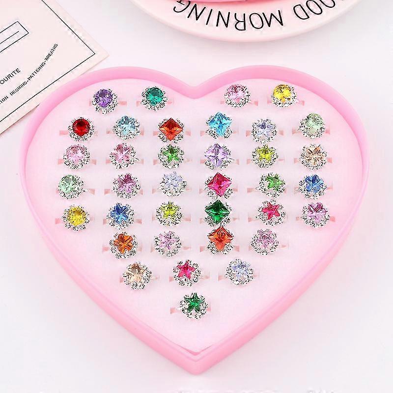 Little Girl Adjustable Rhinestone Gem Rings In Box Children Kids Jewelry Rings Set With Heart Shape Display Case