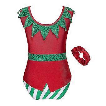 فتاة عيد الميلاد الجمباز ثياب مع عقال الزي بلا أكمام الرقص الرياضي بدلة عيد الميلاد قزم زي عيد الميلاد الباليه ملابس الرقص