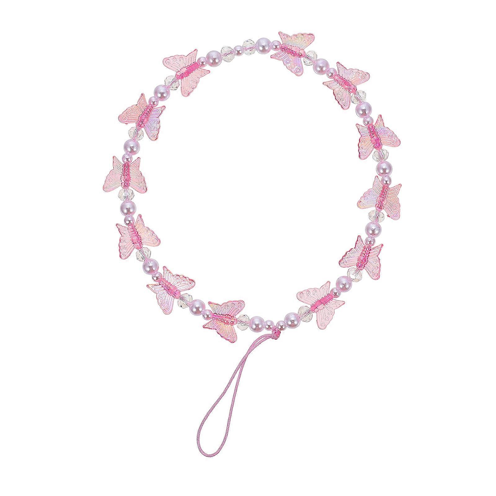 Pearl Butterflies Phone Lanyard for Decor Pink Plastic Resin Creative Gadgets Strap 0.5in
