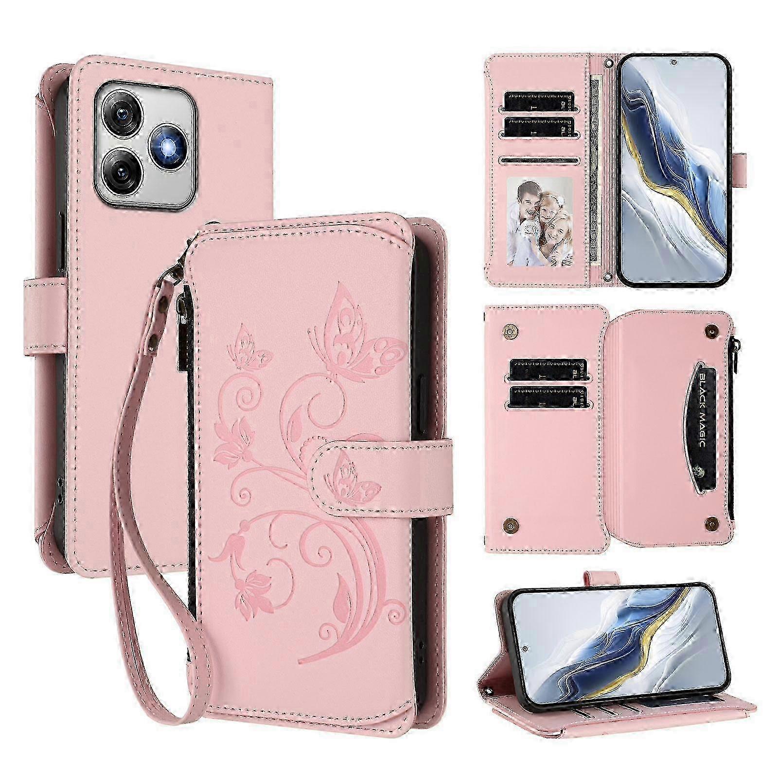 Butterfly Love Flower Multi-card Zipper Wallet Leather Phone Case