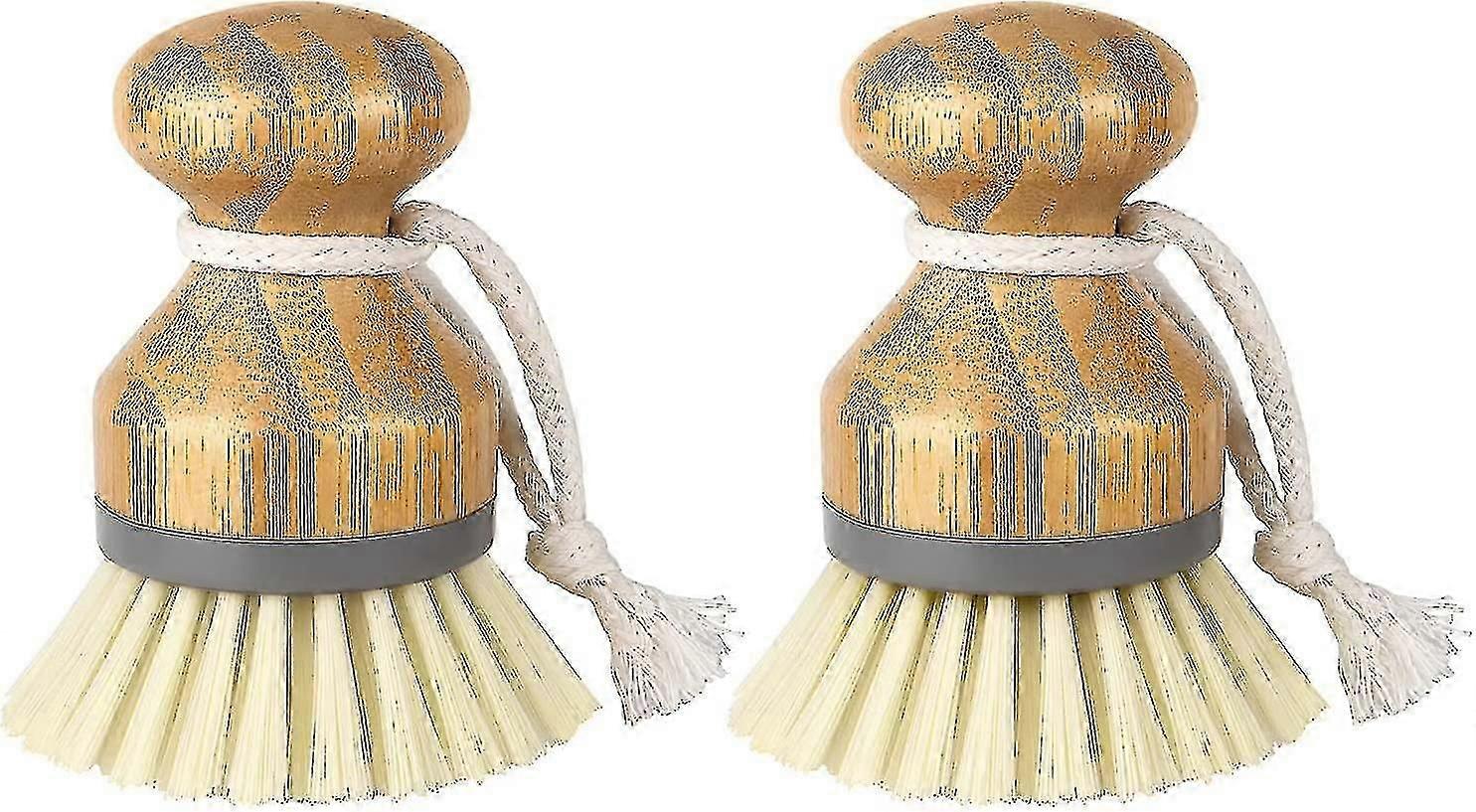 Bamboo Palm Brush, Scrubbing Brush For Cleaning Dishes Flat Pans Kitchen Sinks, Set Of 2 Hy