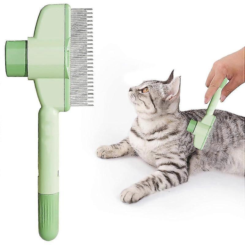 Cat Brush with Release Button, Pet Hair Removal Comb, Self-Cleaning with Long & Short Stainless Steel Metal Teeth for Shedding, Flea Comb for Indoor C