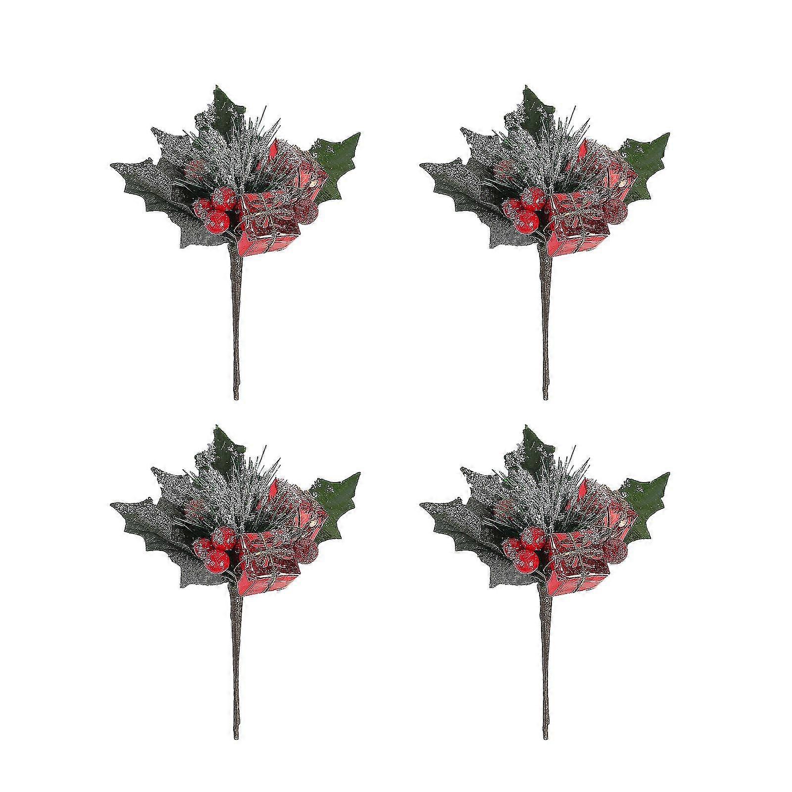 Christmas Berry Twig Branches With Pine Cone Xmas Decor, 4pcs 16cm, Artificial Plants