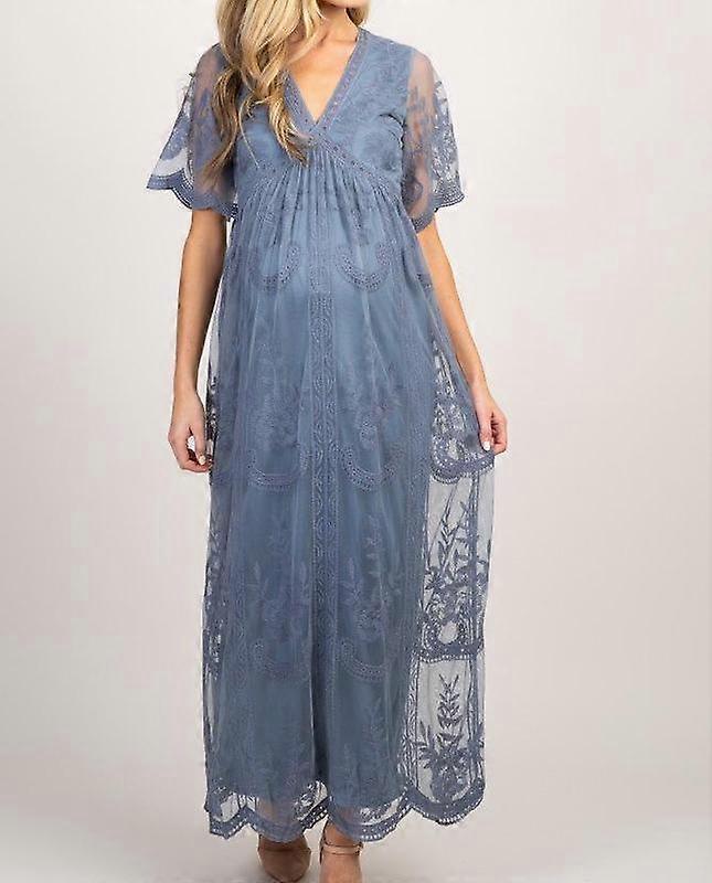 Maternity Dresses for Photo Shoot Summer V Neck White Lace Short Sleeve Pregnancy Dress Pregnant Women Photography Maxi Dress Skirts