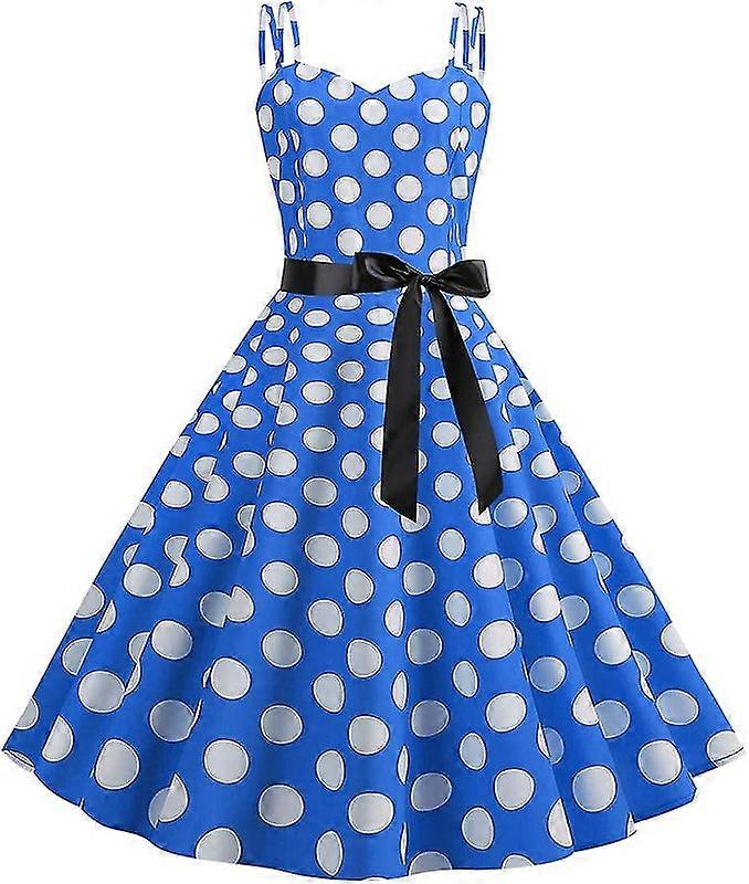 Women's 50s 60s Vintage Sleeveless Strap Polka Dot A-line Swing Cocktail Party Tea Dresses