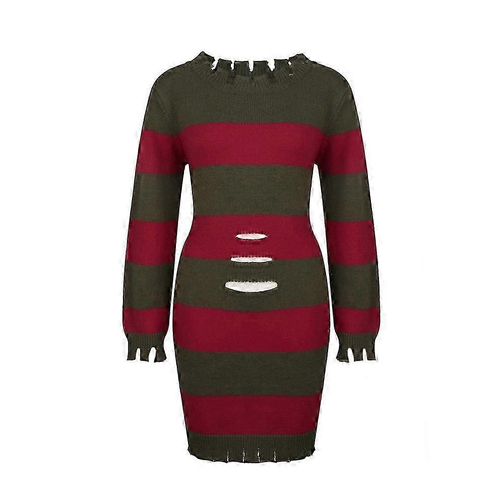 Horrific Cosplay Sweater Dresses Red Green Striped Outfits One-piece Dress Halloween Cosplay Costumes for Men Women High Quality