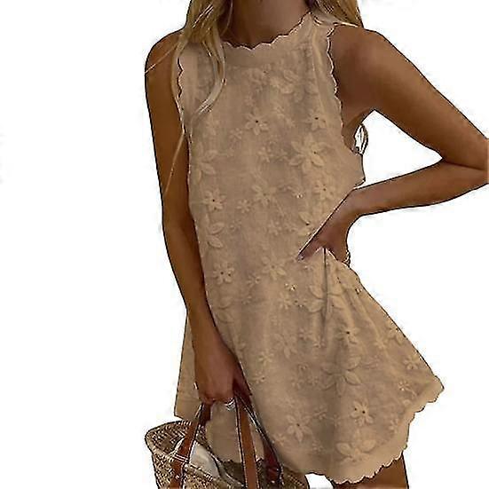 Dress Sleeveless Up Pullover Chic O Neck Party Lady Mini Women Clothes