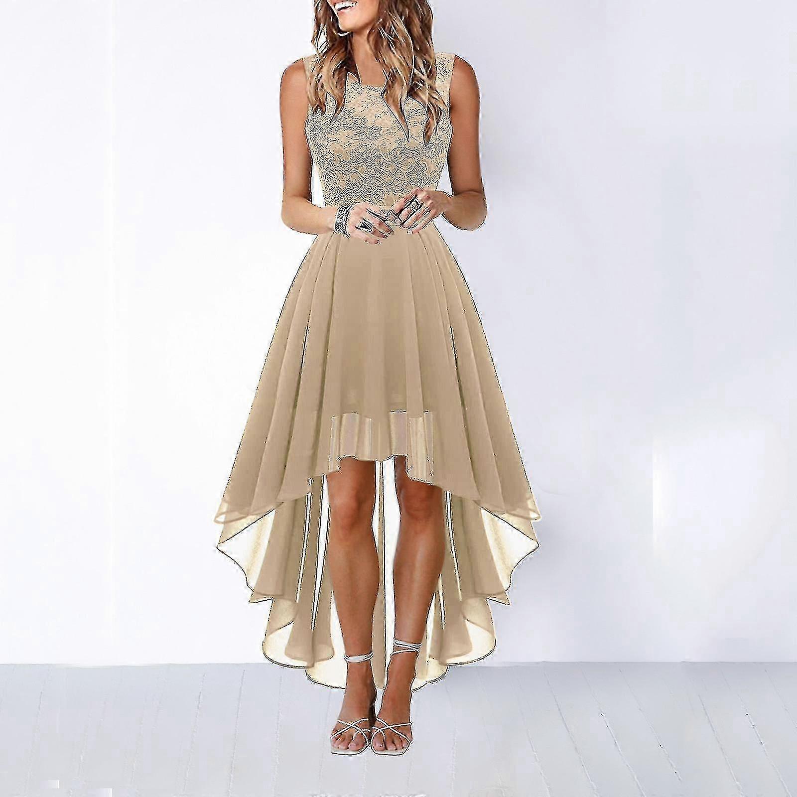 Cocktail Party Dress for Women - Lace Sleeveless Dress with Bow Belt and Irregular Hem