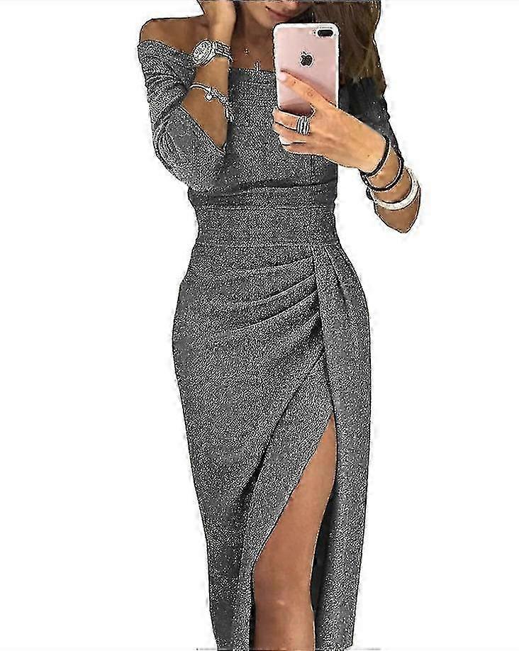 Sparkling Wrap Evening Dress for Women with Hip Slit and One-neck Design
