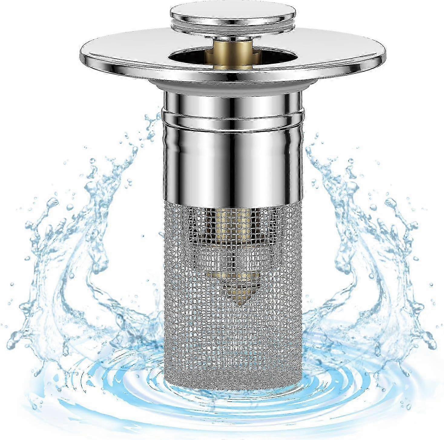 Pop - Up Sink Drain Filter with Hair Catcher - Removable Stainless Steel Basket for Bathroom Sinks (1.1 - 1.45 Inch)