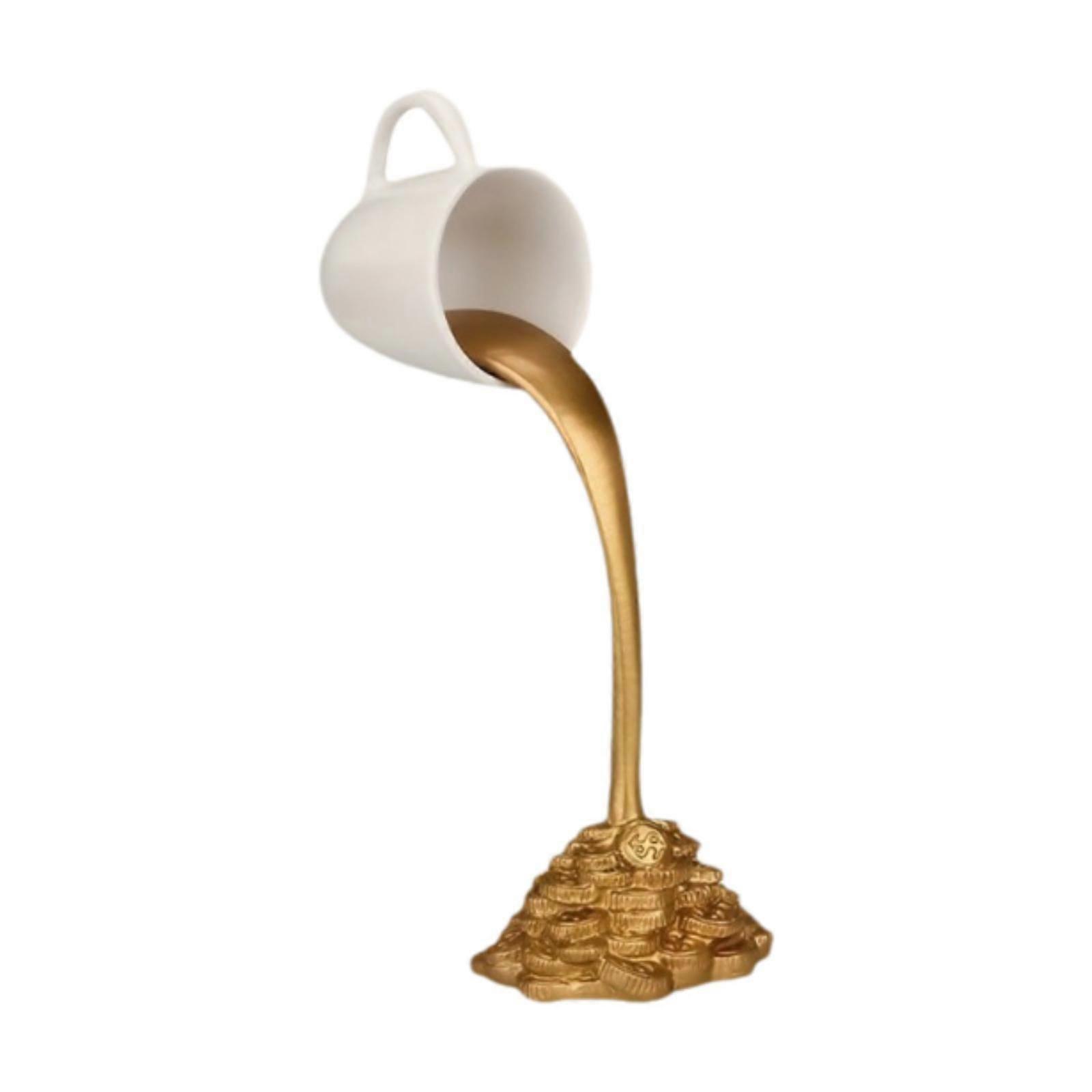 Floating Coffee Cup Mug Sculpture Cafe Office Pouring Spilling Coin Figurine White