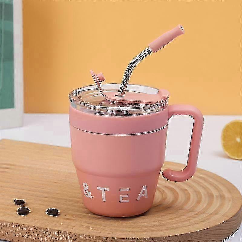 480ml Coffee Cup with Straw Lid Stainless Steel Thermos Mug for Hot Cold Drinks Water Tea Milk Office Outdoor Portable Bottle