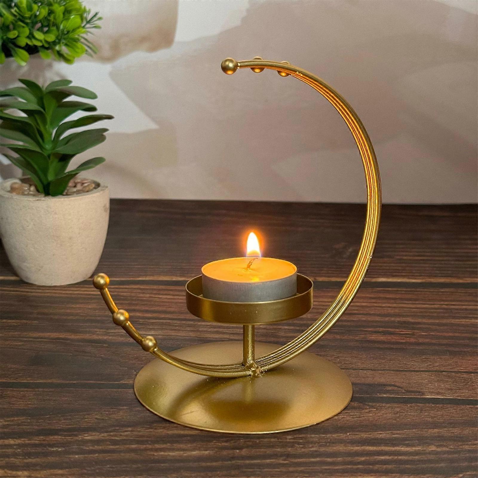 Metal Handheld Lanterns for Candle Muslims Party Decors Middle Eastern Iron Moon Shape Tealight Candle Holder Stand gold
