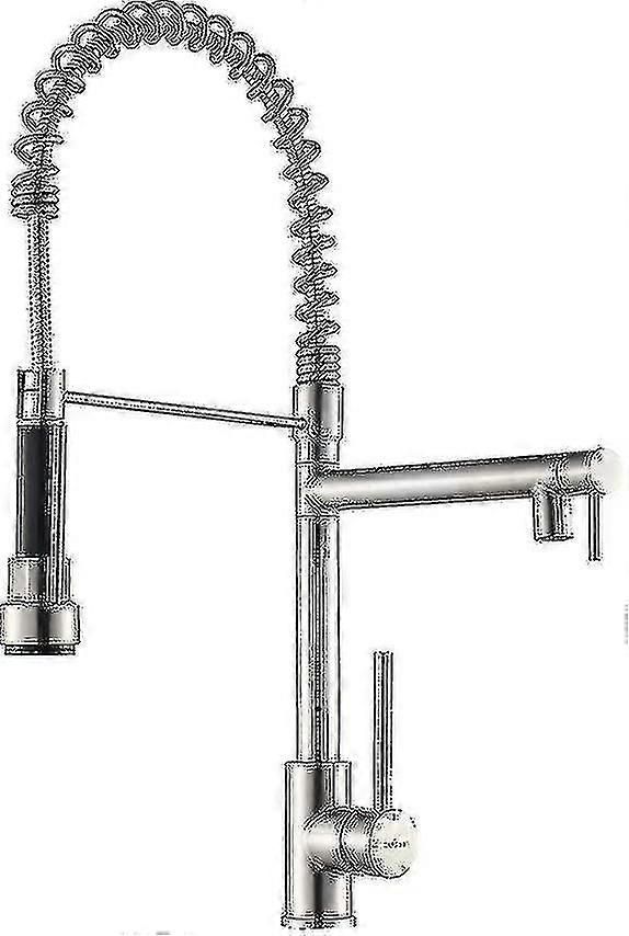 Fong Grifema Lyon-g4005 Kitchen Mixer Tap With Pull-out Spray 2 Jets, Professional Kitchen Mixer Tap With Two Spouts, Stainless Steel