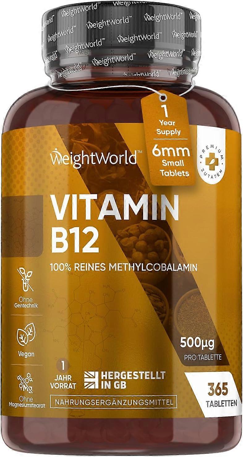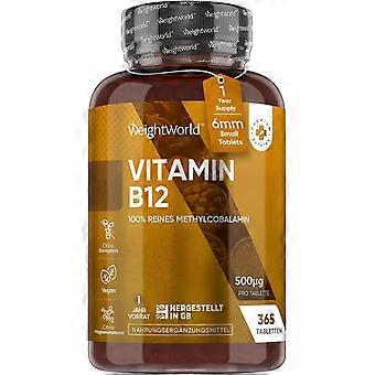 Vitamin B12 500mcg - 365 Vegan Tabs (1 Year) - 100% Pure Methylcobalamin - UK Made