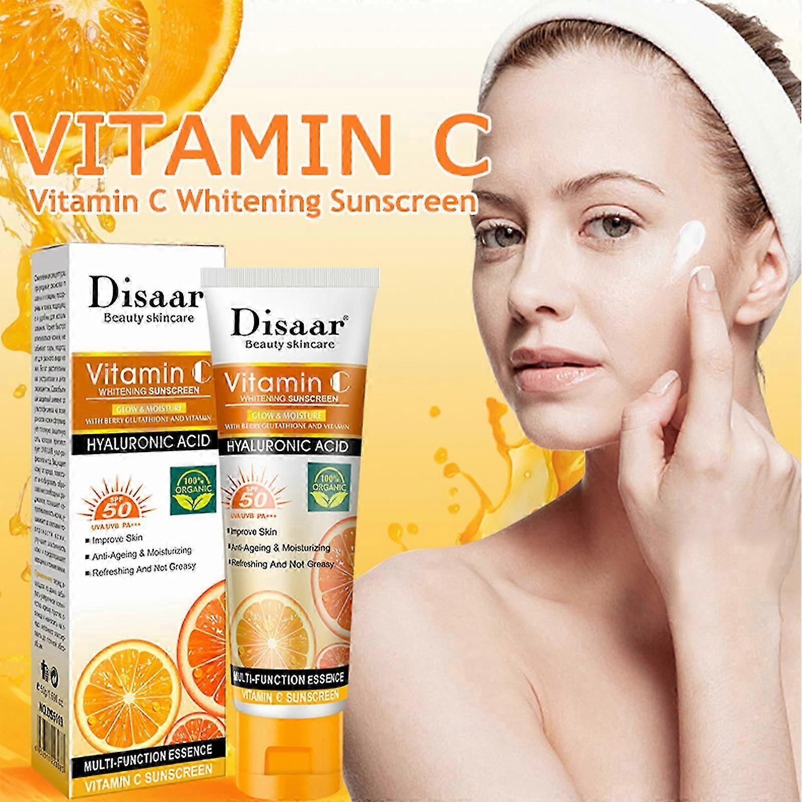 Vitamin C Sunscreen Spf 50, Sun Cream Moisturiser with Vitamin C, Sun Cream SPF 50+ Face for UVA & UVB Protection, Waterproof for Daily Use