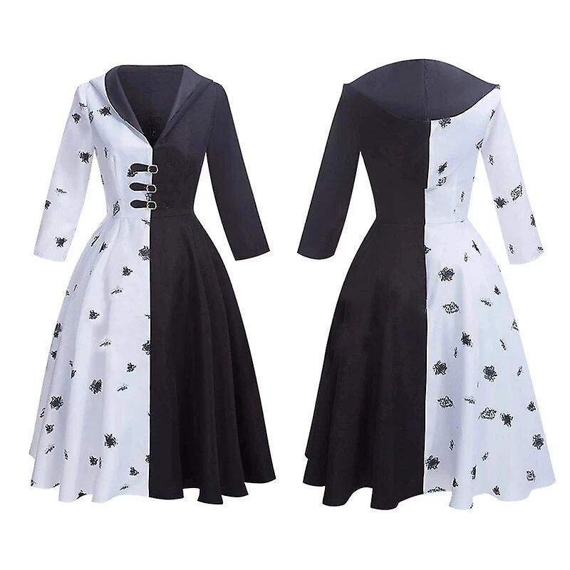 Movie Cruella De Ville Cosplay Costume Women Girls Gown Black White Dress With Gloves Wig Halloween Carnival Party Costumes