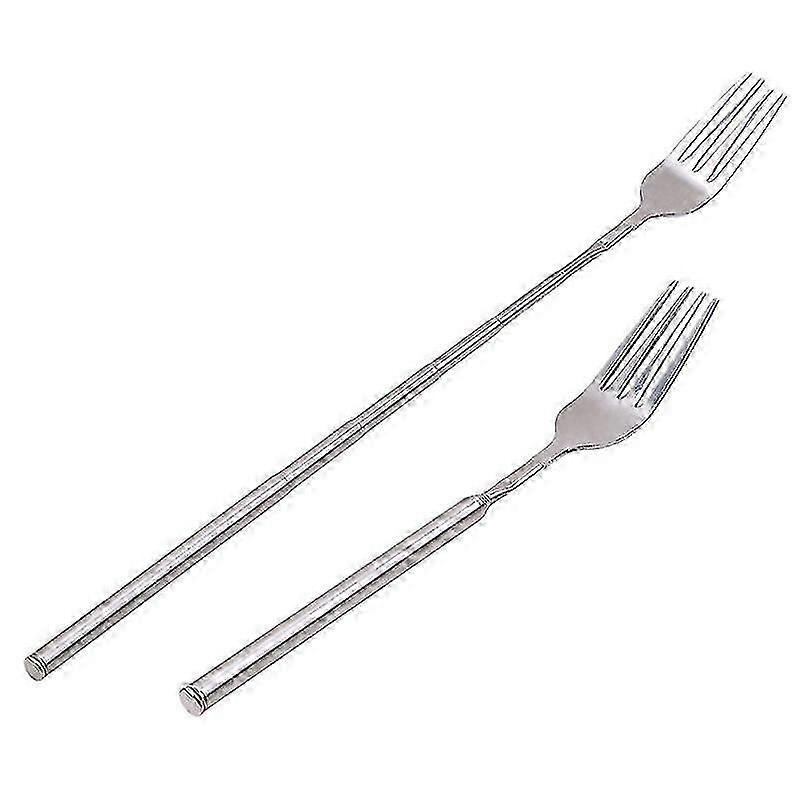 Extendable Telescopic Stainless Steel Silver Dinner Fruit Dessert Cutlery Forks