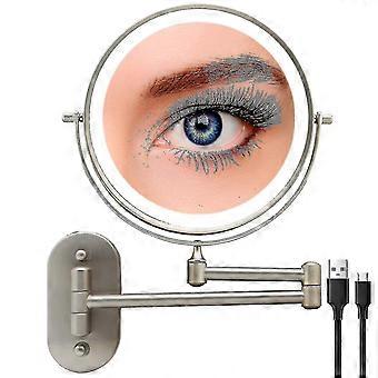 Rechargeable Lighted Makeup Mirror Wall Mount, Extendable Double Sided Vanity Mirror With 10x Magnification, 8 Inch Led Magnifying Mirror With 3 Color