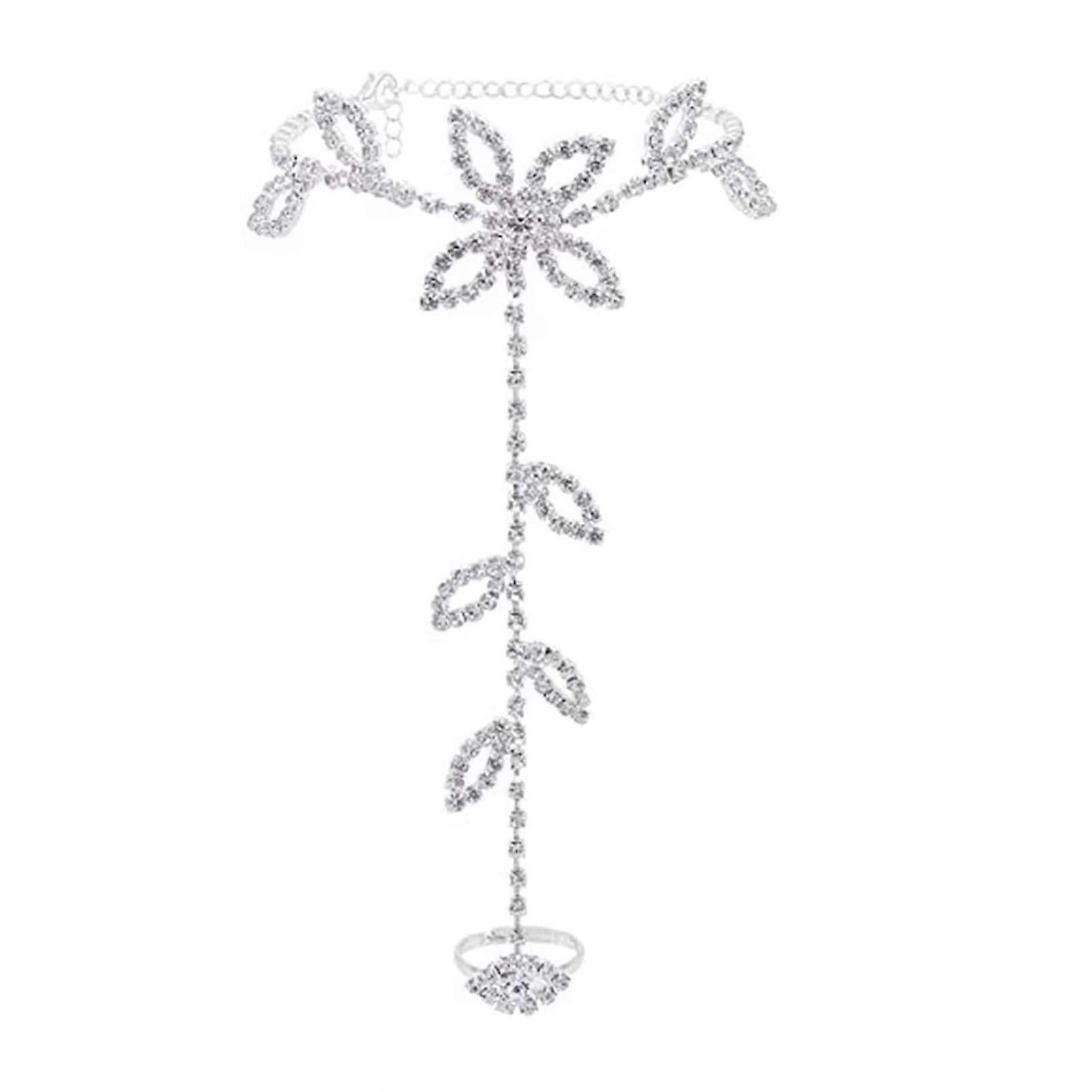 Adjustable Extended Chain Women Anklet Shining Rhinestone Leaves Foot Chain with Toe Ring Foot Jewelry