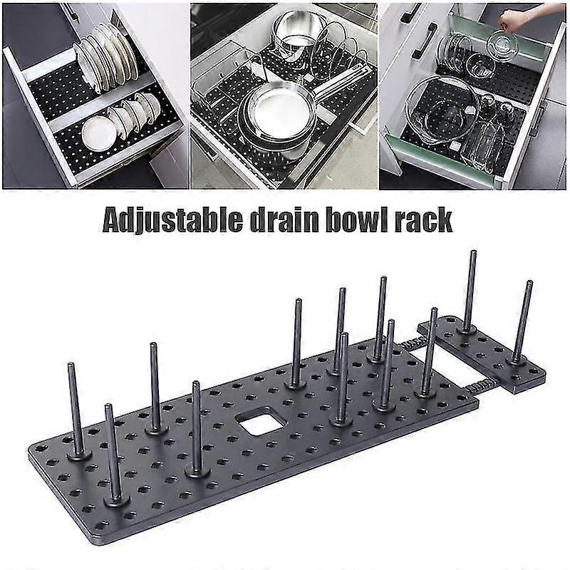 Expandable Kitchen Drawer Organizer Peg Board With Bottom Anti Slip Pad And 12 Pegs Telescopic Board