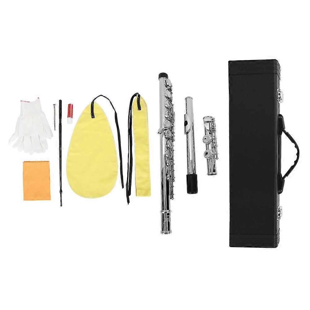 Detachable 16 Holes C Flute With Gloves Screwdriver PU Leather Box Cleaning Tool Set(Silver)