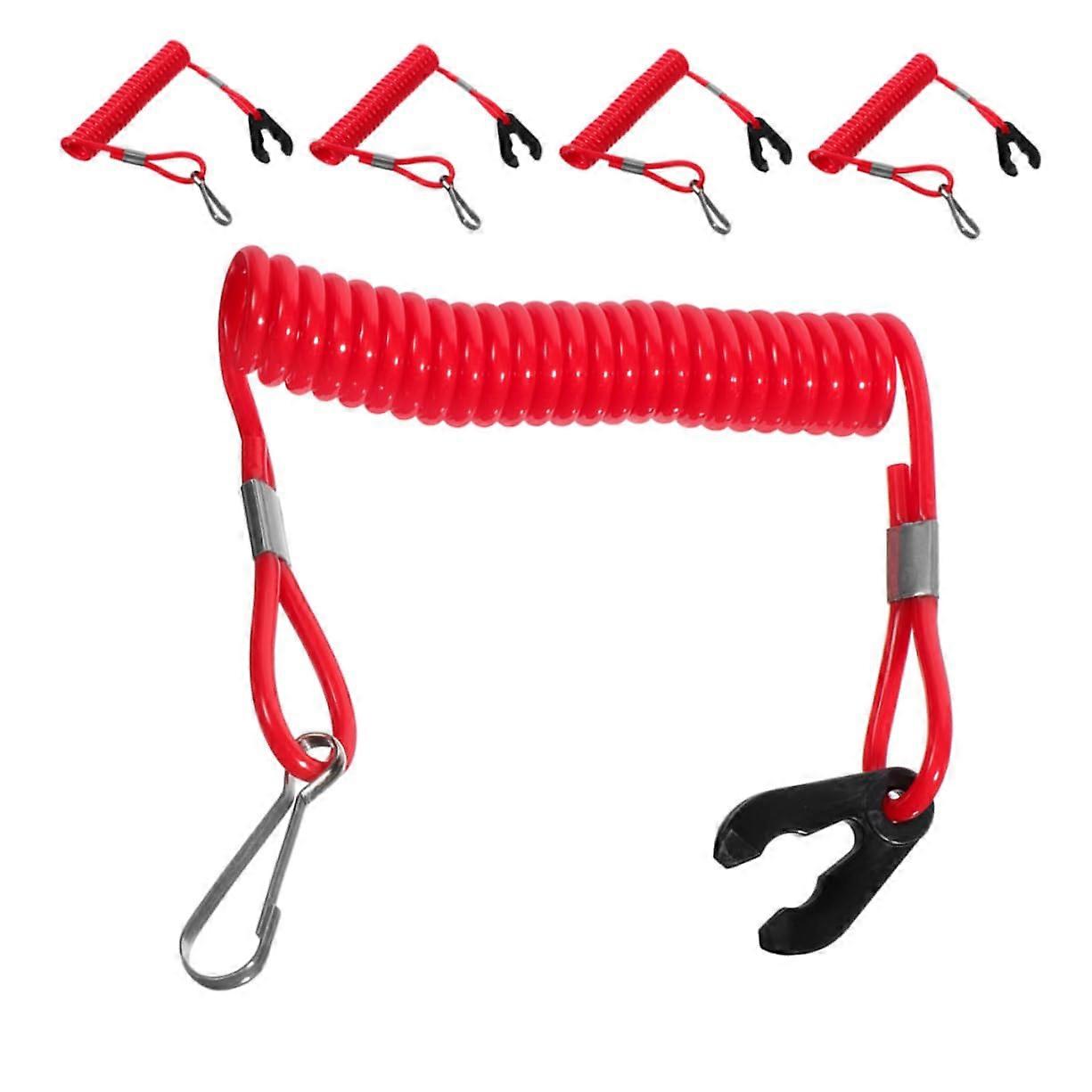 Boat Emergency Lead 5-Piece Motor Stop Lanyard Red Cord Marine Engine Kill Switch Cable For Boats