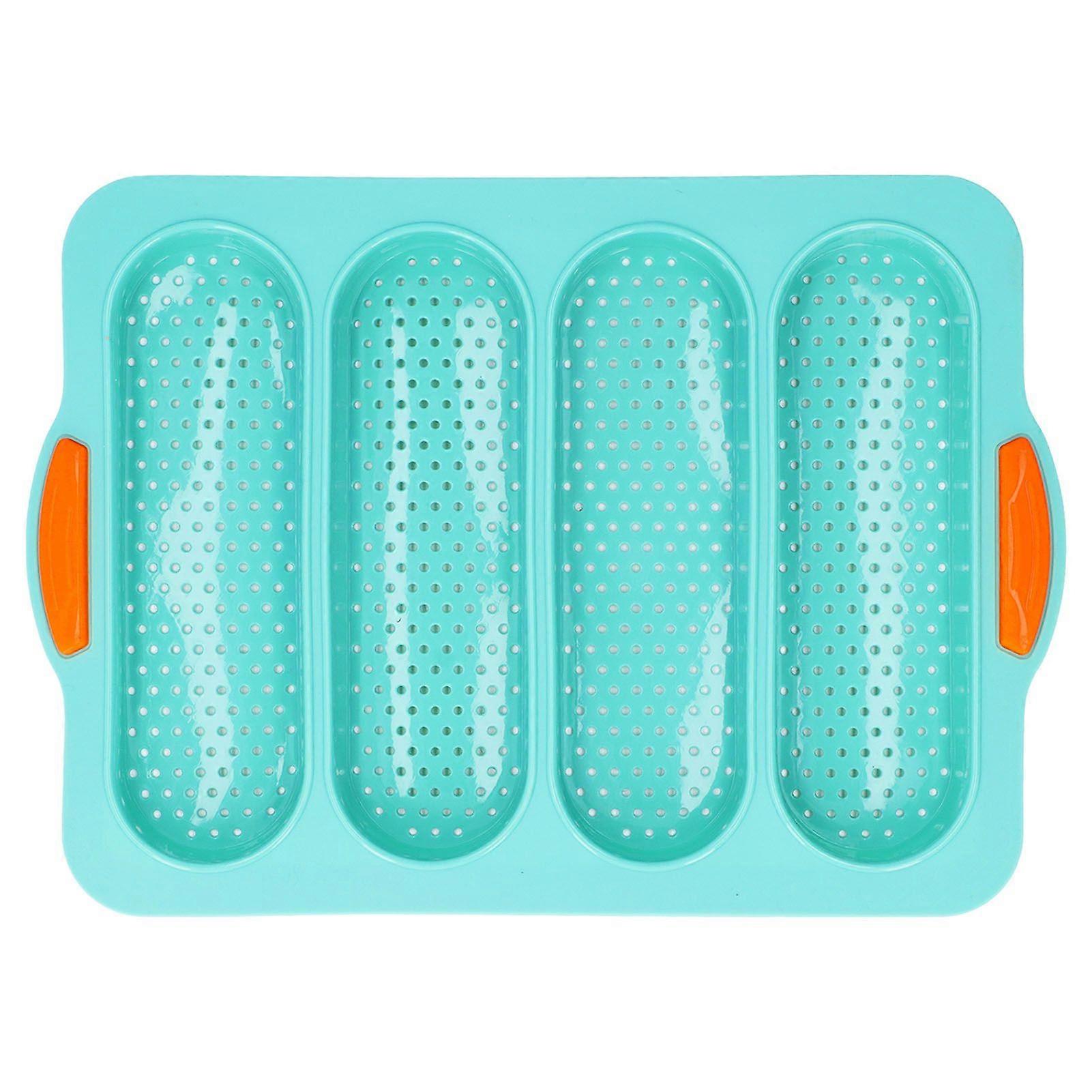 4-Slot Silicone Baguette Mold, Soft and Smooth Surface, Bread Mold, Baking Tray, Kitchen Tool, Green