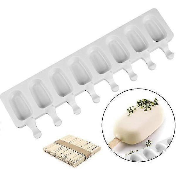 Ice cream mold 8 pcs Mini Cakesicles Silicone mold + 50 pcs Popsicle sticks White