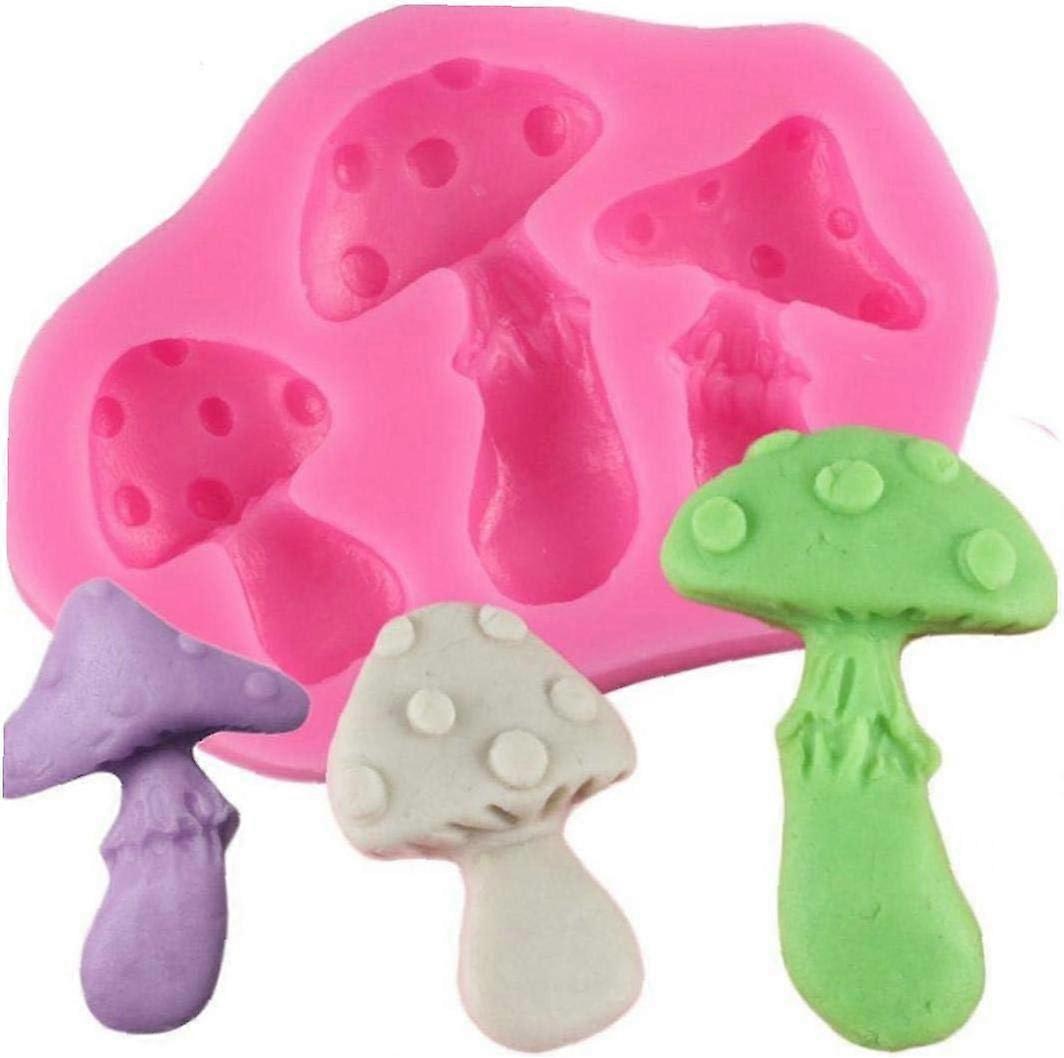 Mushroom Shaped Silicone Mold of 3 Cavity with Biscuits Fondant Chocolate Candy Mould (pink 1pc)
