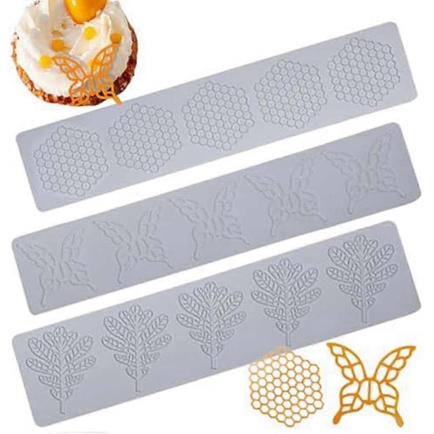 Homemade Delight: Each cake decorating mold includes 3 different shapes of covered leaf, butterfly and honeycomb shape, allowing you to create 3 different shaped edible lace for cakes.It is suitable for edible and non-edible materials, providing endless possibilities. Durable and safe material: Made from sturdy and flexible food grade silicone, this cake decorating honeycomb mold is BPA free, durable and eco-friendly. The non-stick surface ensures that your Fondant or your gum paste releases smoothly from the mold, preserving the intricate details of each design..It's a convenient and reusable option for your cake decorating needs. Heat Resistant: With this mold, your cake decorating skills will reach new heights and you will be able to create more complex and exquisite cakes. Versatile use: This silicone candy, fudge, cookie and chocolate mold is perfect for parties, weddings, birthday cakes or any cake decorating project. You can also use it for a craft handmade, sugar making processes, cake decorations, soft candies, chocolates, etc. It is a must-have tool for any baking enthusiast. Cake Decorating: Elevate your cake decorating game with this versatile fondant mold. Use it to create exquisite desserts for your family and children, making candies, chocolates, cakes, puddings, etc. The beautiful and elegant designs will impress your friends and family, and your cakes will be the center of attention.<br><br>Colour:As Shown Material:Silica gel<br><br>Package Contents: 3 * silicone molds<br><br>Only the above package content, other products are not included. Note: Light reflection and different displays may cause the color of the item in the picture a little different from the real thing. The measurement allowed error is +/- 1-3cm.