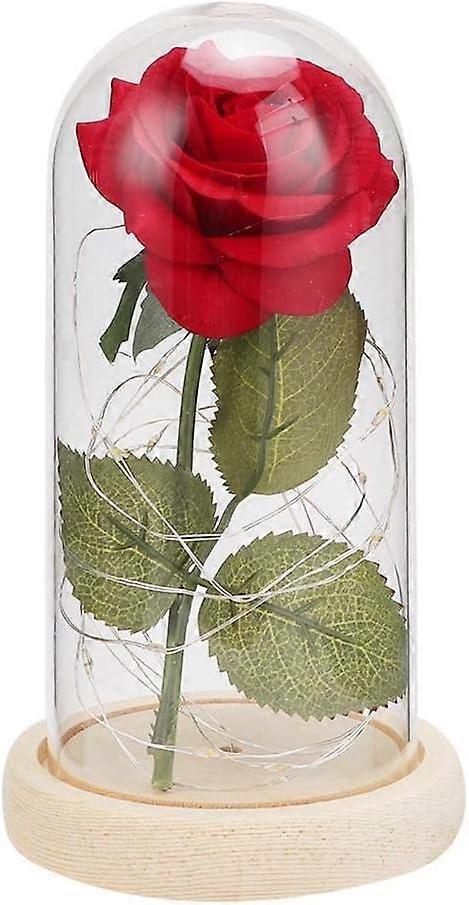 Glass dome preserves roses, imitation rose glass lampshade night light with wooden base for home dec