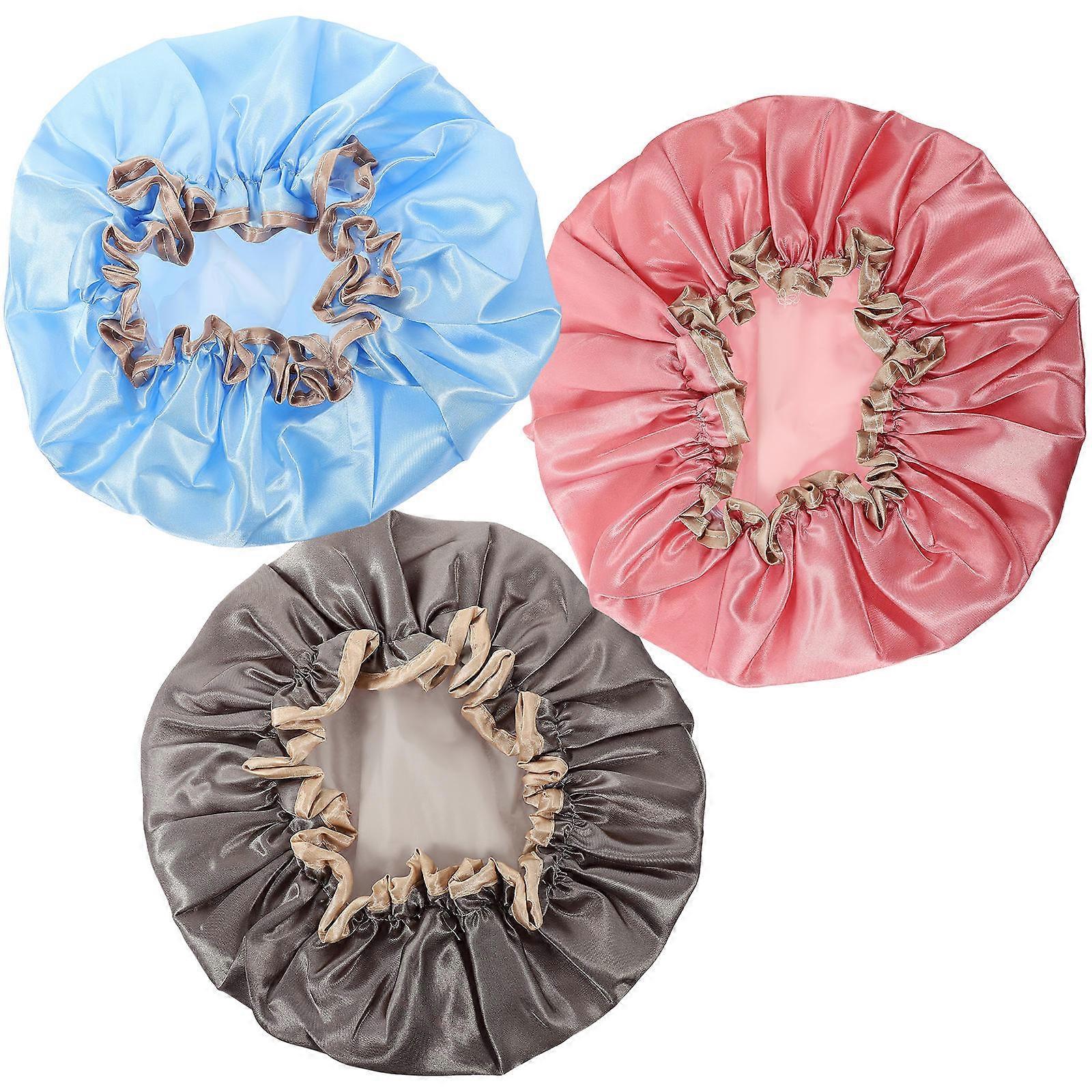 Waterproof Shower Hats Protect Hair Gray Double Layer 23x23cm 3Pcs