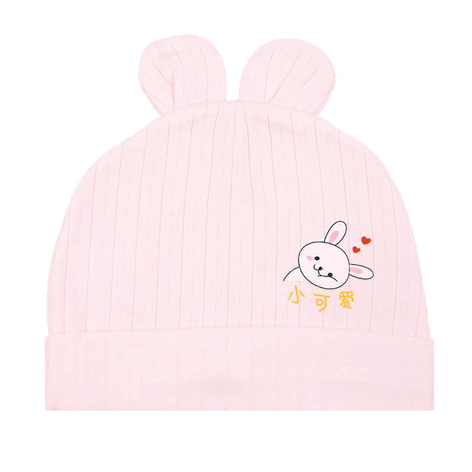 Newborn Baby Hat Cotton Bunny Pattern Soft Comfortable Cute Infant Hat for Summer Autumn Pink