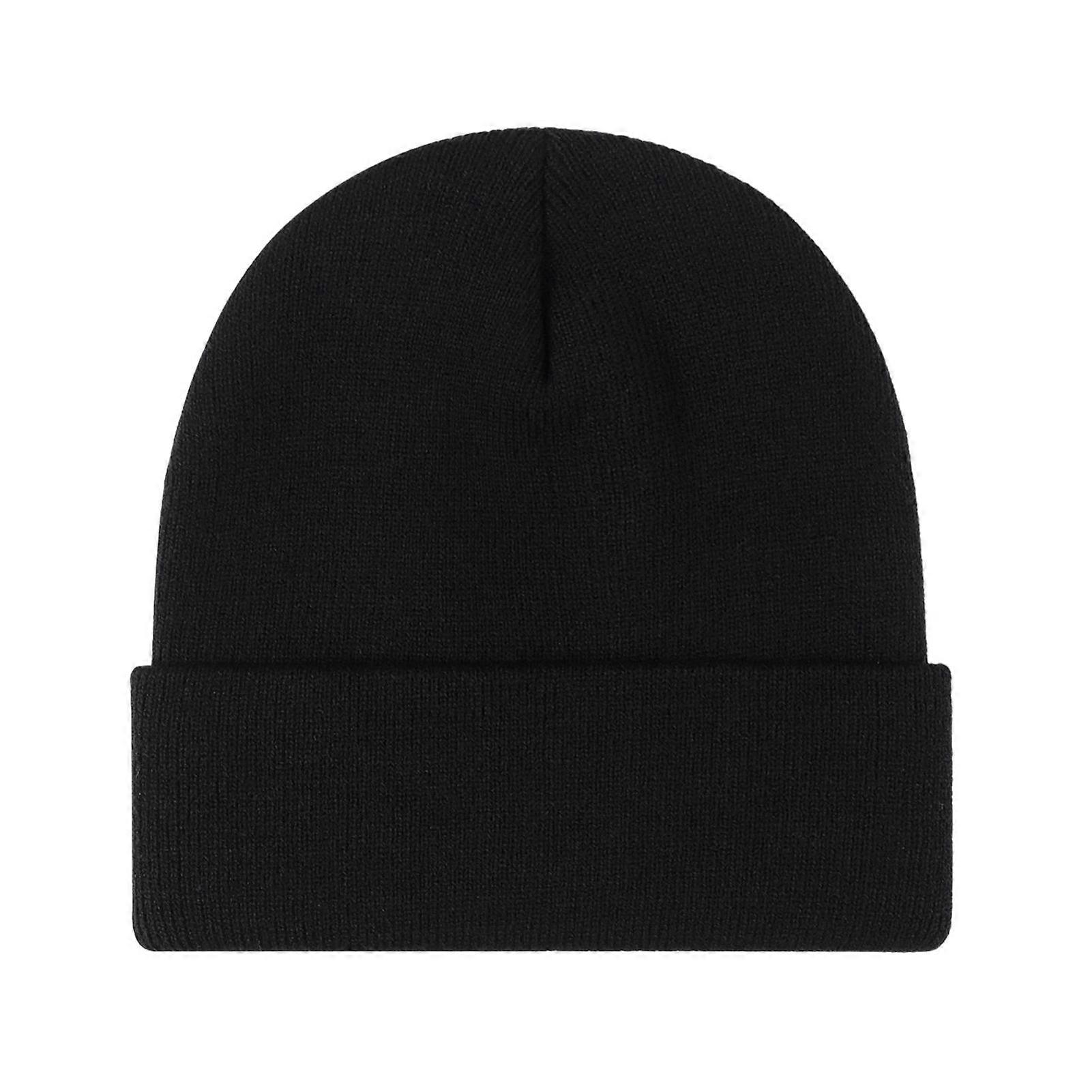 Winter Unisex Knitted Hat Stretchy Folded Brim Thickened Solid Color Ear Protection Warm Daily Wear Cap Outdoor Skiing Skating Headwear