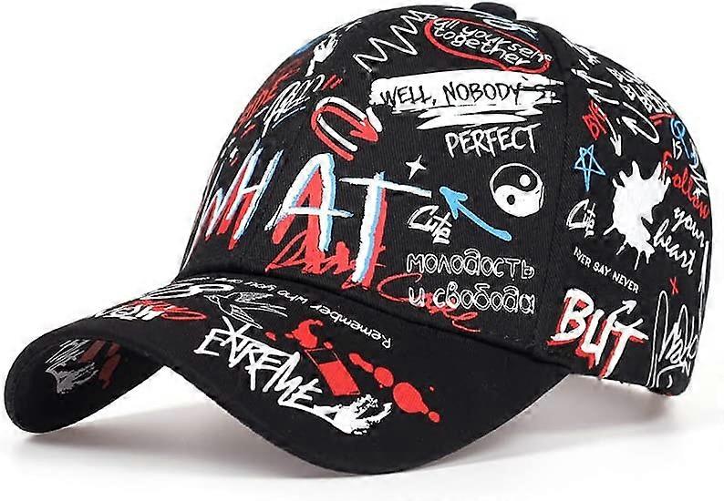 Unisex Graffiti Baseball Cap, K-pop Boys Outdoor Snapback HatBlack White Hiphop Hat, Dad Hat, Trucker hat for Men Women 98 Graffiti Hat Black -
