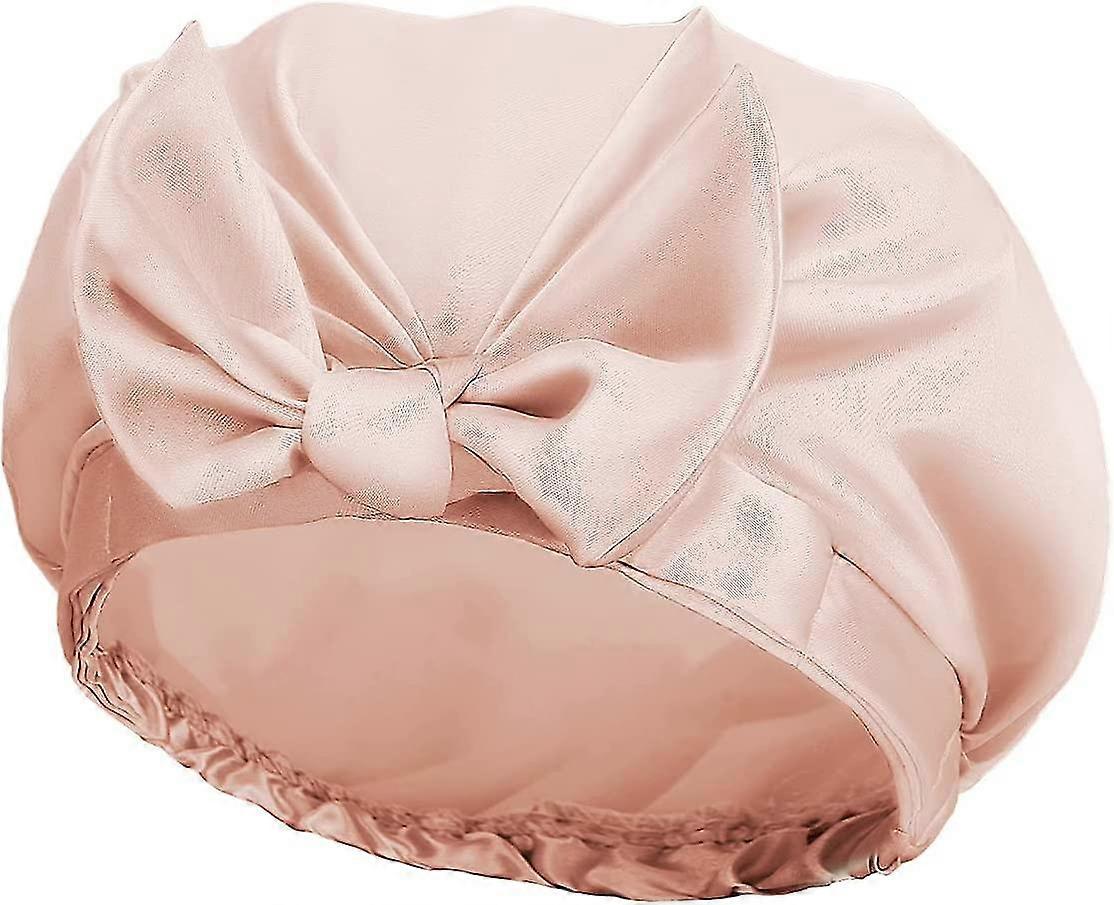 Shower Cap Reusable,ribbon Bow Bath Cap Oversized Large Design With Waterproof Exterior For All Hair Lengths,great For Girls Spa Home Use (beige)