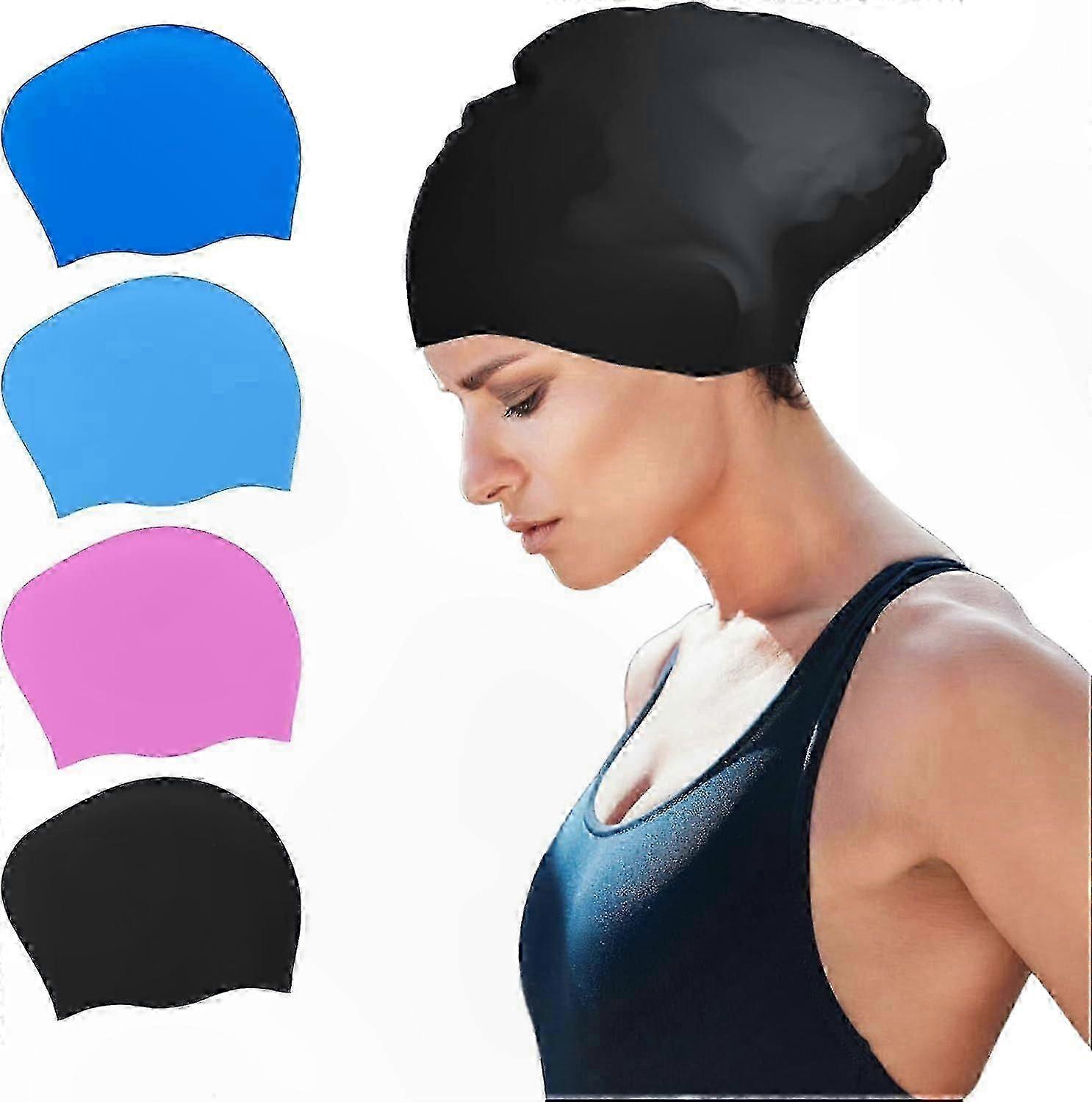 Silicone Swim Cap for Long Hair, Waterproof Adult Swimming Hat for Women, Large Size Black