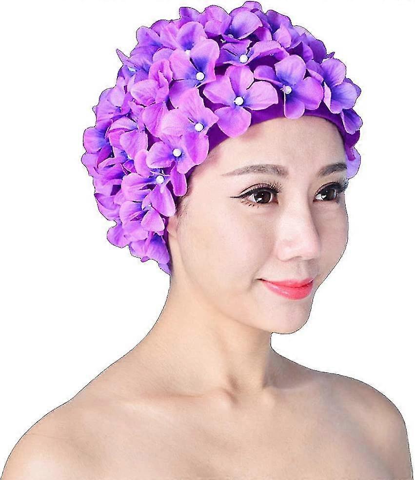 Women's Vintage Floral Breathable Swim Cap - Petals