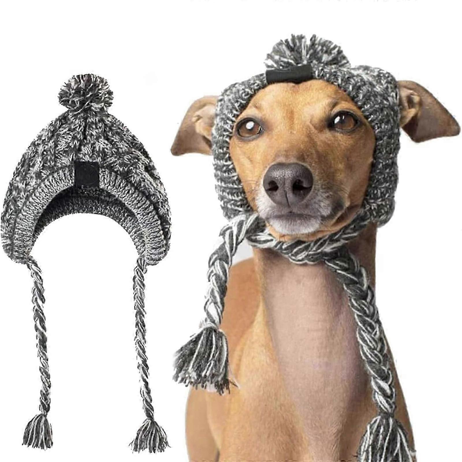 THREE SIZE OPTIONS : S:33-41CM, M: 41-51cm, L: 53-61cm. After measuring the dogs head circumference, please choose the appropriate size according to the size recommendations.HIGH QUALITY MATERIAL : Dog winter hat is is made of fabric, soft and comfortable, and will not cause discomfort to your pet. Pom Pom Hat on the dog hat makes it a soft and playful dog hat for cold winter walks! Beanie knitted dog hat can be machine washed or hand washed.WARM AND COMFORTABLE : The knitted hat is equipped with knitted ear seams and tassel braided rope, which is convenient to wear. To keep your dog's ears and head warm in the cold winter, braided rope and tassels can fasten the hat firmly to prevent your dog's hat from falling off during activities.DOG WINTER HAT: Dogs are our lovely friends. Give the winter dog hat as a gift to our special friend to make it warm through the cold winter. A soft & playful hat are suitable for various occasions in cold winter days, such as walking, winter outdoor travel, family gatherings and parties, making your pet more fashionable when taking pictures.Different Colors: We have dog hats with ear holes in grey and purple colors, the quantities and colors are enough for your pet's daily wearing and replacement needs, making your pet different and attractive every dayWINTER HATS FOR DOGS: Hat is suitable for most small to medium dogs (please choose the right size for the dog's head circumference). Before choosing a size, please measure your dog's head circumference and choose a suitable hat according to your dog's head circumference.