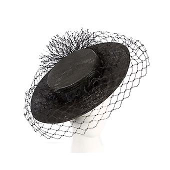Black boater hat with face veil by Fillies Collection S305B