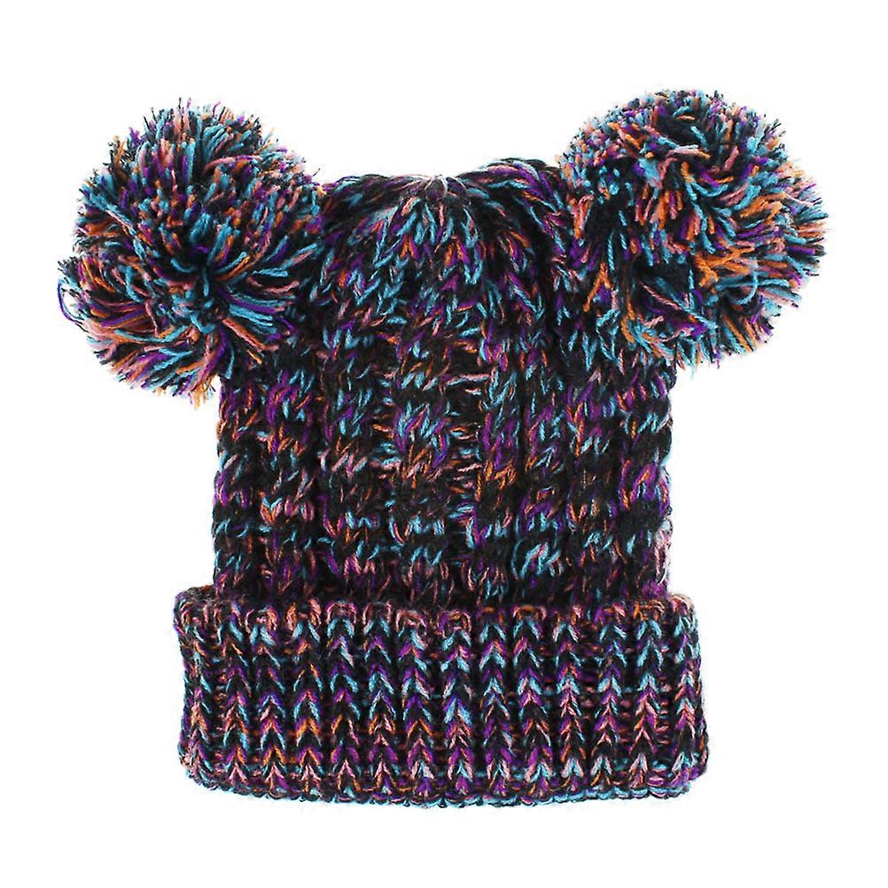 Kids Knit Hat Girl Winter Crochet Two For Children 1Set Multi Keep Warm