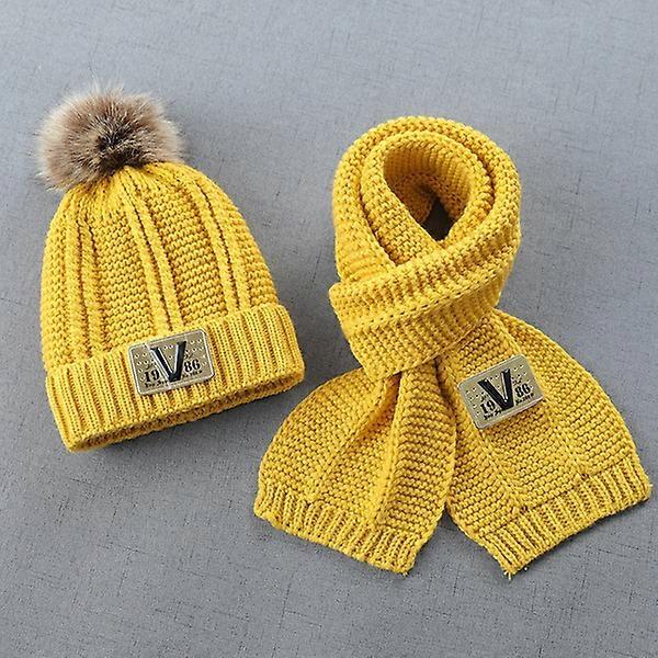 Children's Plush Warm Woolen Hat and Scarf Two-piece Cute Outdoor (D)
