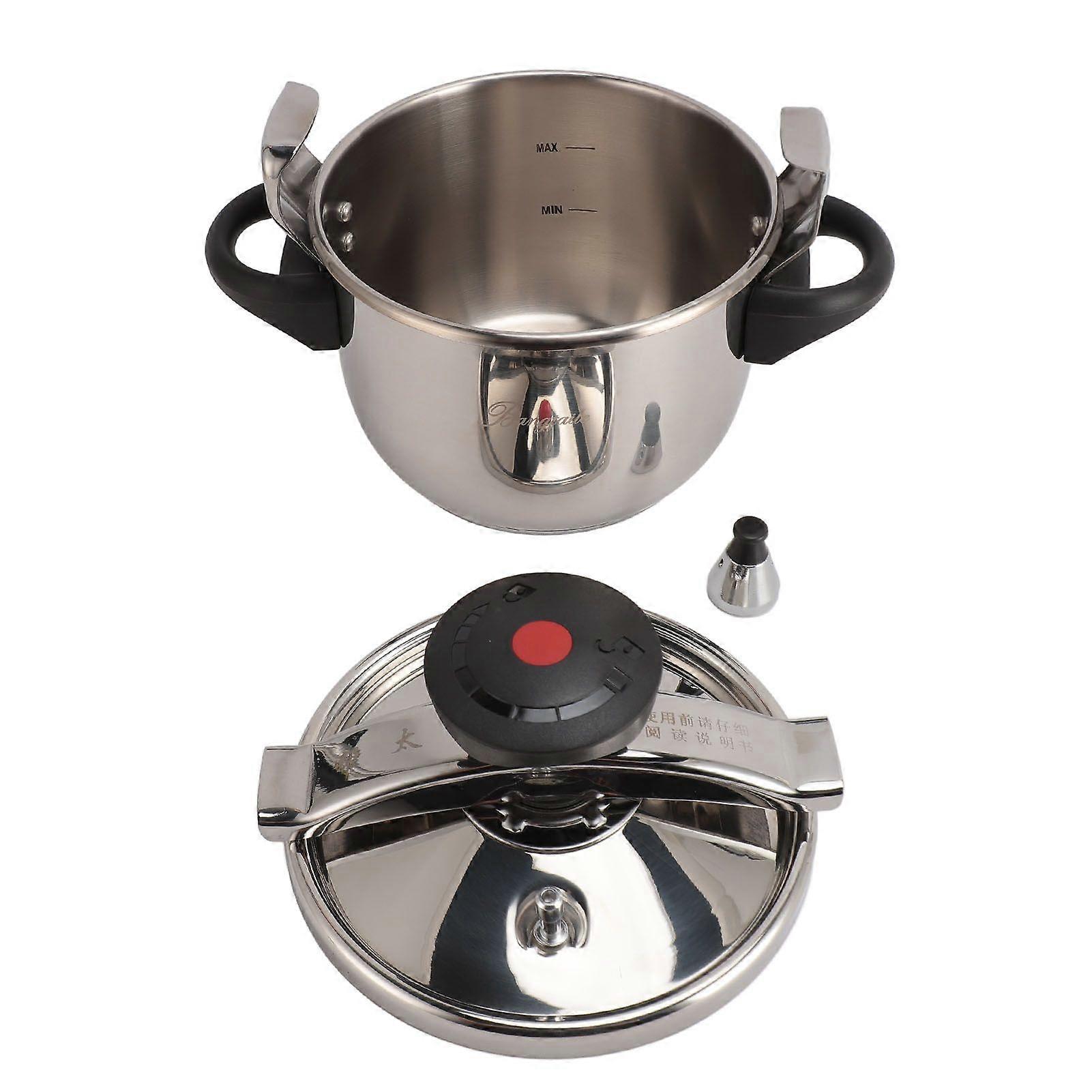 Feature:1. Efficient Cooking: Mini pressure cooker with stainless steel construction cooks food under high pressure, raising boiling point of water and speeding up cooking process. Saves time and retains more nutrients compared to traditional stewing.2. Multifunctional Design: Versatile pressure cooker can cook rice, stew, steam, make porridge, boil noodles, and more. One pot versatility for easy and practical cooking. Interior high pressure circulation ensures thorough food preparation.3. Safety Features: Elastic beam lifts when safety valve and pressure limiting valve are blocked, releasing pressure from around lid to prevent explosion. Frosted knob for easy one hand lid operation. Frosted handle for slip resistant and heat proof grip, convenient for carrying and placing.4. Stainless Steel Material: Made of premium 304 stainless steel for high temperature resistance, rust resistance, and durability. Ensures quality and longevity of the cooker. Removable silicone sealing ring processed with special technique to prevent air leakage.5. Mini Pressure Cooker: Automatic exhausting through pressure limiting valve creates high pressure environment inside the cooker for quicker food preparation. Pressure cooker for healthy meals in less time. It ensures optimal cooking and long lasting performance.Specification:Item Type: Mini Pressure CookerMaterial: 304 Stainless Steel, SiliconeWeight: Approx. 2304.00g / 81.27ozFunction: Compatible with Induction Cookers, Gas Stoves, Electric Stoves, Ceramic Stoves, etc.Capacity: 3LWorking Pressure: 55KPAApplication: This Pot Can Be Used For Cooking Various Foods, Especially Those That Usually Require A Long Cooking Time, Such As: Meat (Whole Pieces, Chunks, Strips), Vegetables, Soups, Rice, Porridge, Fish.Package List:1 x Mini Pressure Cooker1 x Pot LidNote:1. Do not exceed the maximum water level, which is 2/3 of the capacity.2. When the pressure limiting valve releases a lot of steam, turn off the heat and let it cool naturally before opening the lid for consumption (you can continue to cook under pressure after turning off the heat).3. If you want the congee to be thicker, after the first cooling, continue to heat until the pressure release valve releases steam, then turn off the heat and let it cool before opening the lid for consumption.