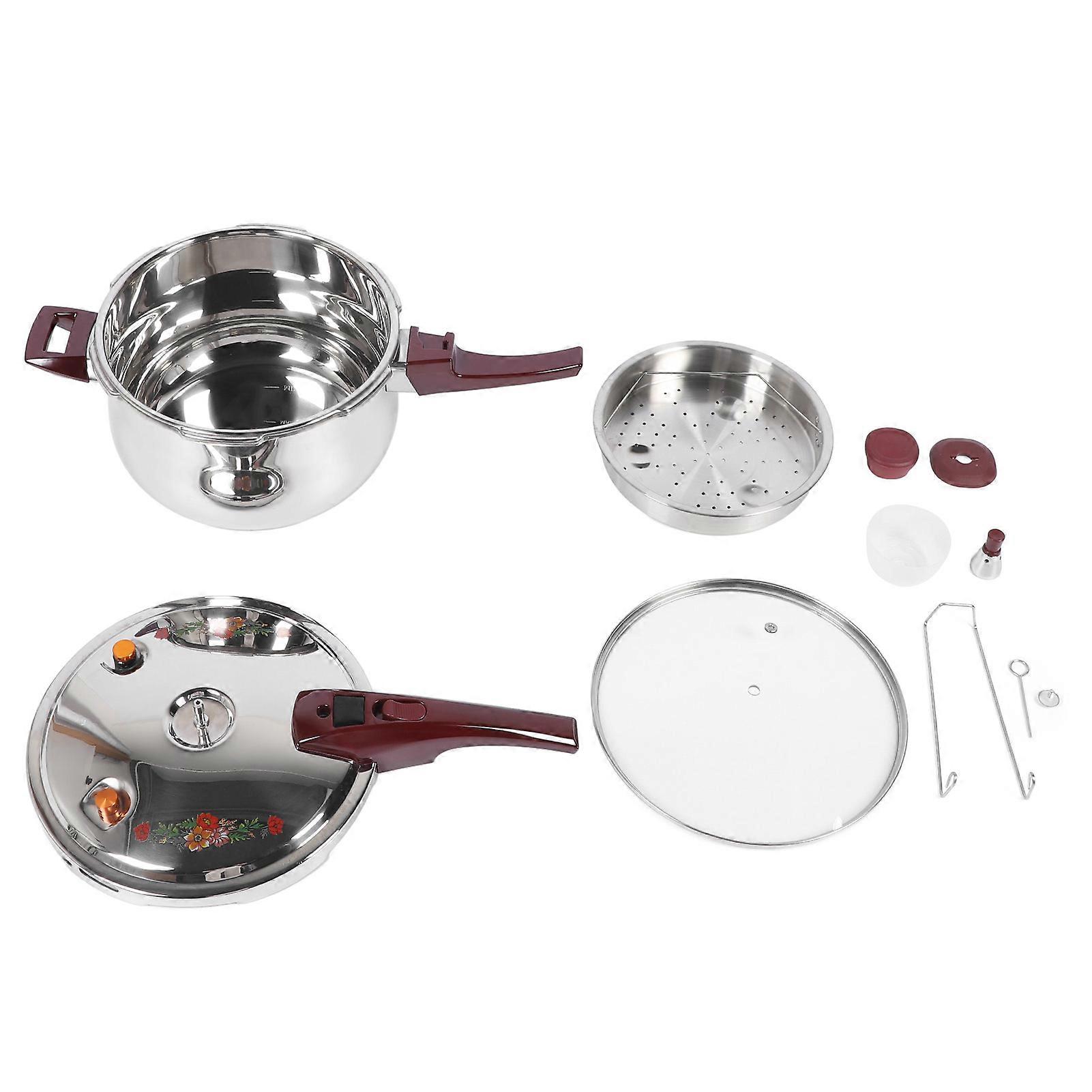 80KPA Pressure Cooker Stainless Steel Time Saving Multifunctional with Steam Basket Glass Lid Stovetop Pressure Cooker for Induction Gas Stove 11L