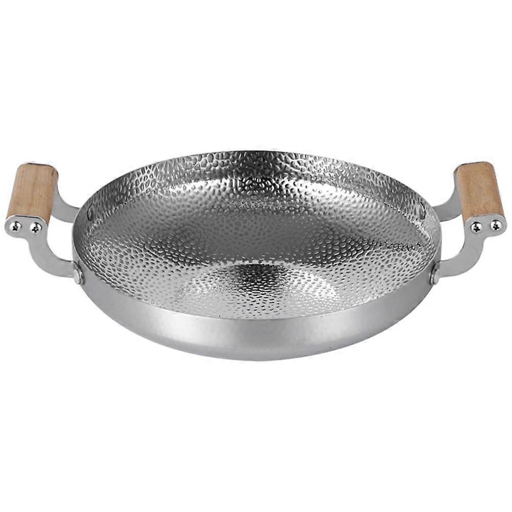 Stainless Steel Saucepan Wok Grilling Wok Griddle Fry Pan Flat Bottom Wok with Wood Handle