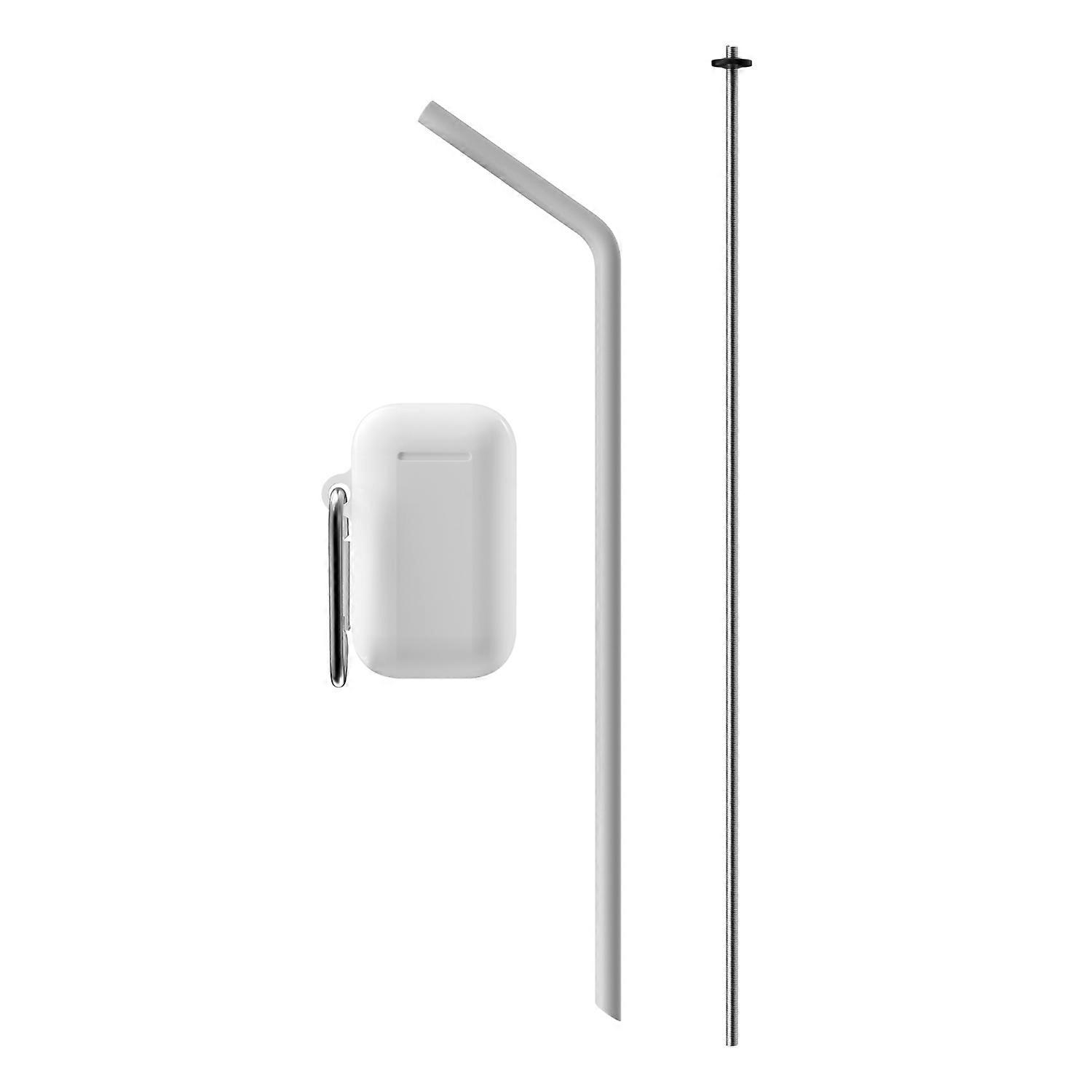 wiederverwendbarer biegbarer Silikonstrohhalm mit 25 cm Länge in Grau - Mit Reinigungsbürste und tragbarer Aufbewahrungsbox in Weiß